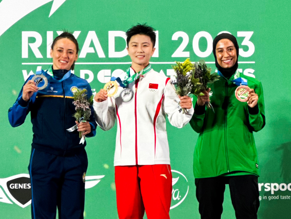 △ 中国选手李玥瑶获女子武术散打52公斤级冠军