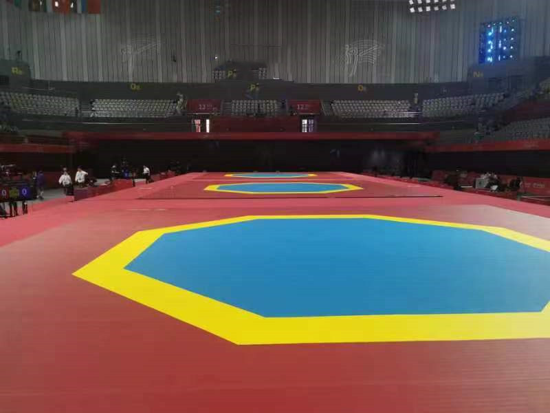 广西学青会上的跆拳道比赛系列产品,全部由pg电子 自主研发设计,其生产工艺,环保要求及舒适度上都达到了领先水平。作为世界跆拳道联合会认证产品,pg电子 跆拳道系列产品已经在奥运会、亚运会、全运会、大运会等各大赛事中得到充分肯定。从场地专业垫到高科技护具再到配套产品,pg电子 将伴随国际跆拳道运动的发展不断提升。