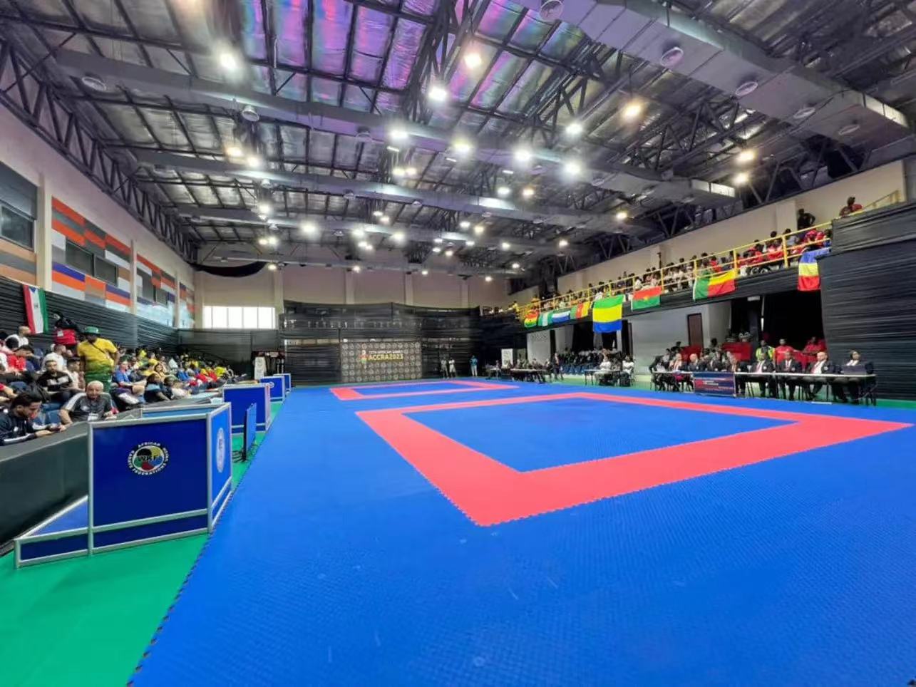 第十三届非洲运动会上的空手道比赛系列产品,全部由pg电子 自主研发设计,其生产工艺、科技含量、环保要求、安全性能及舒适度上都达到了世界领先水平。从设计、研发、生产、铺装、使用,pg电子 在非运会空手道赛事上全程保驾护航。作为世界空手道联合会认证产品,pg电子 空手道系列产品已经在奥运会、亚运会、大运会等各大赛事中得到了充分肯定与认可。从场地专业垫到高科技护具再到配套产品,pg电子 随着世界空手道运动的发展而不断提升。